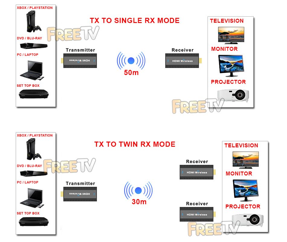 - Can works as a 1 way or 2 way wireless HDMI extender (Need extra receiver unit)